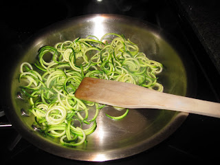 This is Sarah's lunch for tomorrow, chicken in marinara sauce over the zucchini spaghetti.